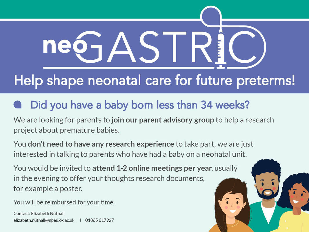 The neoGASTRIC research team is looking for parents whose baby was born before 34 weeks to join their Parent Advisory Group (PAG). Your experiences and insights could make a real difference to improving care for future preterm babies.