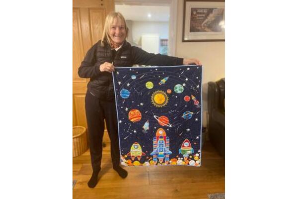 - Angela (space quilt) is a very new knitter and is ‘hooked’ on the craft.
